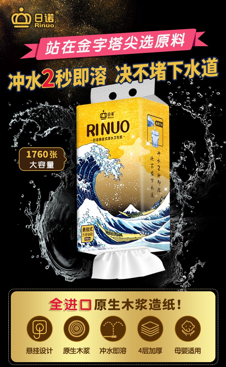 日諾懸掛式水溶抽紙巾1提抽取式可溶廁紙掛式速溶衛生紙廠家批發